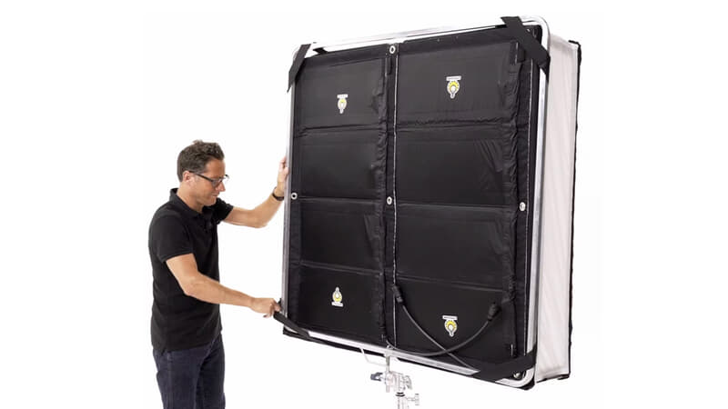 SNAPBOX® is the smart softbox solution for flexible LED panels and tile fixtures. It instantly transforms slim light sources into fully controllable soft lights—without bulky rigs or complicated setup. Designed for professionals who need fast, compact, and reliable light-shaping on set.